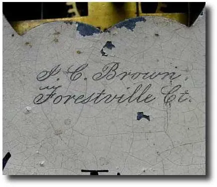 Forestville, Conn, in generally good+ condition with poor label, but fabulous original dial. The lower band has some veneer chips, and the case has be...