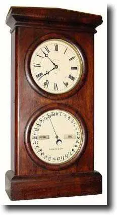 8-day iron front with great painted decorations to the case. Retains original brass springs and the gilded trim on the case is outstanding. The dial i...