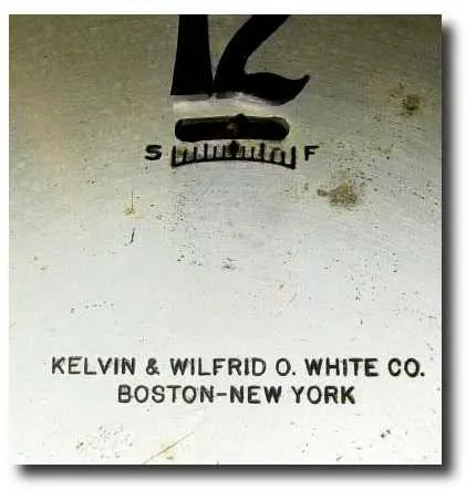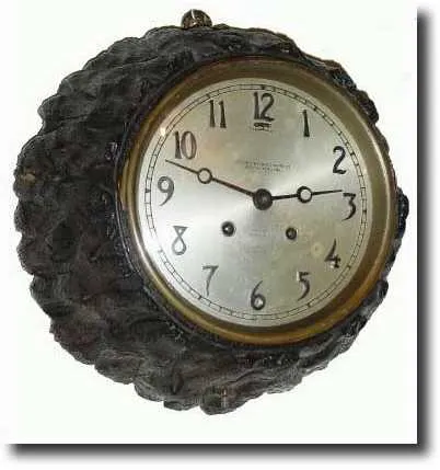 for Kelvin and Wilfred O. White Co., Boston-New York (engraved on dial), Ship's Strike clock in an unusual case of sectioned oak, joined to look like ...