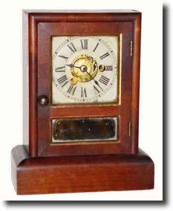 New Haven, Ct, mini iron front with open escape visible in bottom glass. This is a cute little clock in generally good original condition; minor wear ...