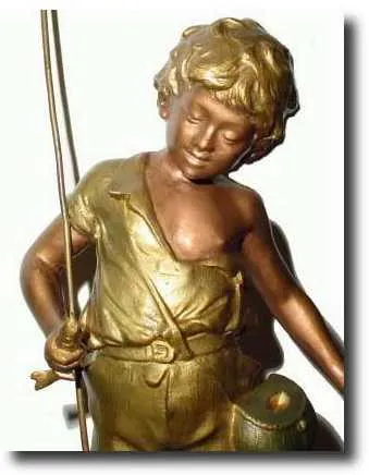 young boy with his first fish. This is a very attractive cast figure and marble clock. The marble case is very nice with only a little roughness along...