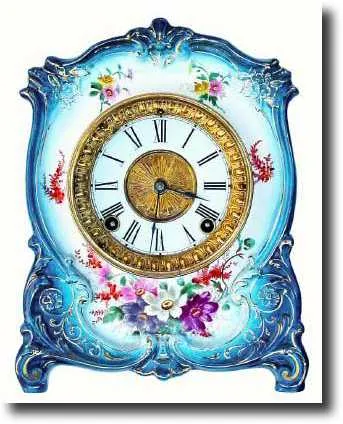 This little clock is mounted on a wooden base with simulated marble finish. The dial and bezel glass are fine. The mainspring of the movement is broke...