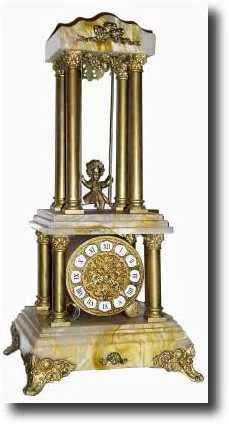 the top a round plywood case, the extension of solid mahogany with brass rod to simulate a lyre. The movement has a robust spring, but we are unsure i...