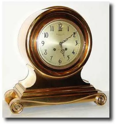 for Spaulding and Co., Chicago, (signed on dial) red brass "Drum on Base" SHIP'S STRIKE mantel clock in very good original condition. This clock was d...