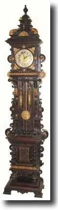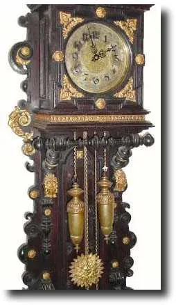 Open Well, Berlin style free swinger in excellent original condition. The walnut cased is accented with nearly 3 dozen small bronze castings of high q...