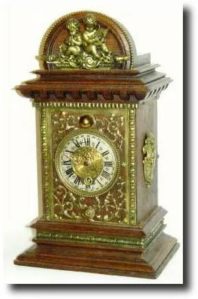 C.1885, German, Gustav Becker, small oak cased mantel clock with bronze mounts.