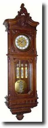 Bristol CT 8-day wagon-spring double steeple. The case is in pretty good condition; there is some veneer loss along the top front molding. A couple of...