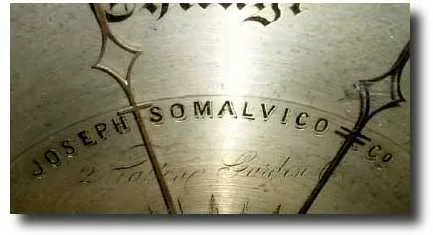 C.1870, English, Joseph Somalvico and Co. banjo wall barometer clock