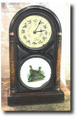 original reverse painted glass in the bottom shows a picture of some pheasants, and the case of this clock is in nice condition. It even has a nice la...