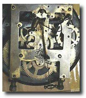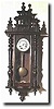43 inches high and over 15 inches wide. Time is marked on a porcelain dial with Arabic numerals, and carved columns decorate each side of the door. Gl...
