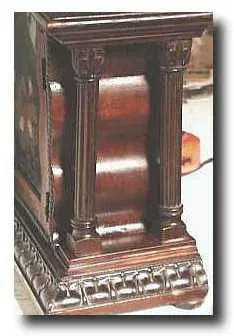 Four Column Mantle Clock. Inlaid scalloped front door, with serpentine lines around the front glass. Two full turned columns on either side of the cas...