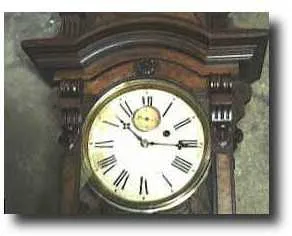 The clock measures 49 inches long and 15 inches wide. The paper dial is signed, but has become just a tad worn around the 8-11 numerals. It does have ...