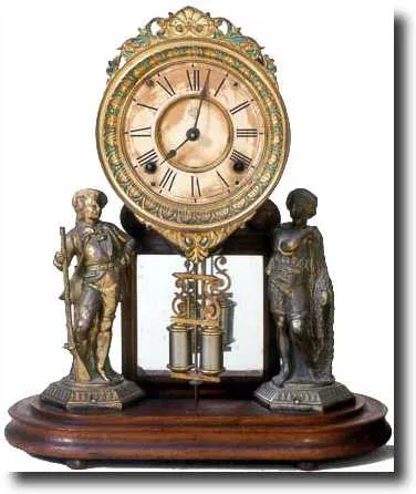 Eight-day time-and-strike, spring-driven, brass movement. Paper dial marked Ansonia. Walnut platform base, no dome. Height: 16 1/2 inches, Width: 14 i...