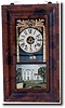 Figured mahogany case with gold leaf turned columns, with a supporting gold leaf crest over movement. Old tablet in door. Label reads: Brass clocks ma...