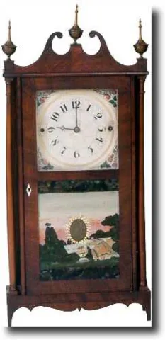 Mahogany case with old finish and nice patina. Crisp wooden dial and original tablet Outstanding label. Time-and-strike, 30-hour, east-west wooden-wor...