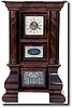 Highly figured mahogany case. Bottom door opens to clean, original label with etched tablet. Center door tablet has flying eagle with banner that read...