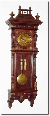 C.1890, Austrian, 2-weight "Vienna Regulator' in an Alt Deutsch walnut case with "roof' style top, and lots of brass trimmings on the front.