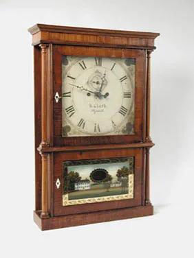 Similar in design to a pillar and scroll without the crest or feet. Bottom panel has been replaced with a scene of white building and church. Top has ...