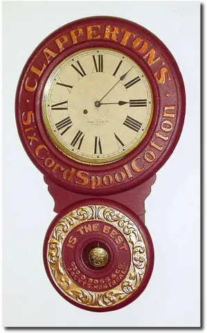 C.1890, Baird Clock Co., Plattsburgh, NY, clock advertising Clapperton"s Six Cord Spool Cotton, Geo D. Ross and Co., Agents, Montreal.