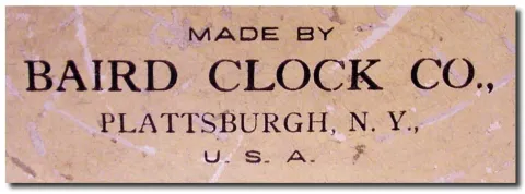 This clock has been repainted a color with more purple than the dark maroon inside, and scrollwork on the lower door was incorrectly gilded. The ad slogan itself is not repainted (painter went "round the letters carefully). Now the rest the clock is super, original dial and label. For further details, refer to Baird Advertising Clocks by Jerry Maltz, pages 20-21. If this had the original paint, we would expect it to bring $2000. Height 30'