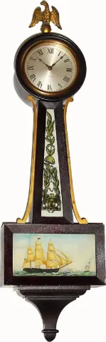 in nice original condition. The entire clock is especially clean, from the dial to the tablets to the original finish. The top capital where the eagle...