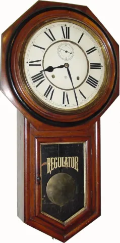 C.1901, Ansonia Clock Co., "Office Regulator" 8-day time and strike, octagon long drop in black walnut.