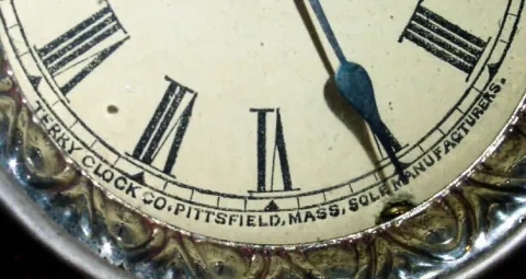 C.1883, Terry Clock Co., Pittsfield, Mass. 30-hour "Plush" alarm clock,