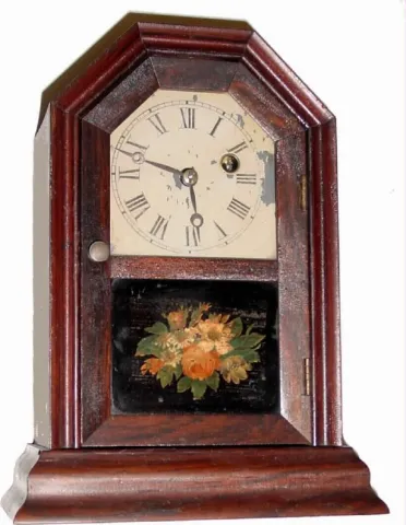 C.1865, Atkins Clock Co., 30-hour rosewood cottage clock