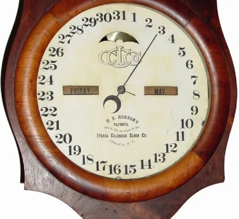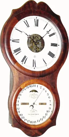 C.1880, Ithaca Clock Co., "No. 4 Hanging Office" rosewood, 30-day double dial calendar clock,