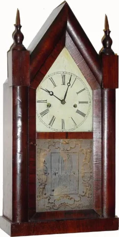 C.1855, Terryville Mfg. Co., Terryville, Conn, 30-hour rosewood steeple clock.