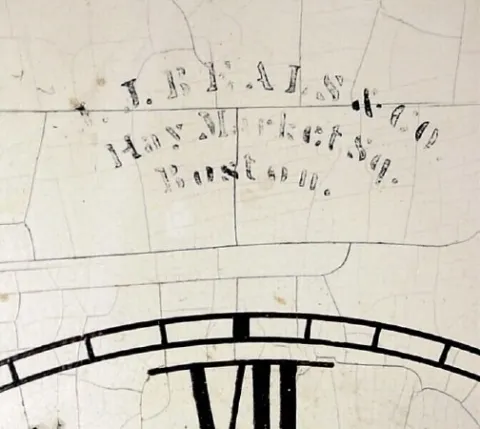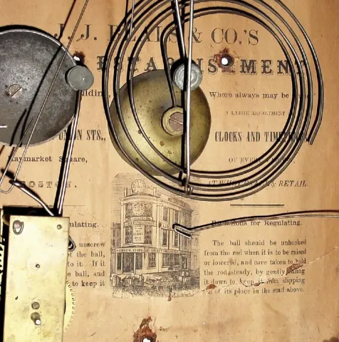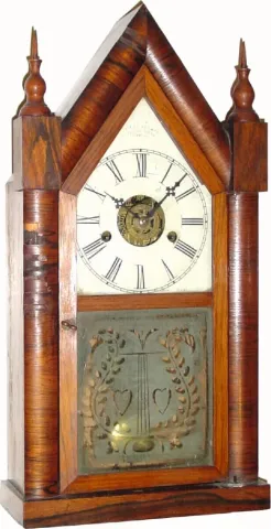C.1850, J. J. Beals and Co., Haymarket Square, Boston, MA, full size 30-hour rosewood front steeple with alarm,