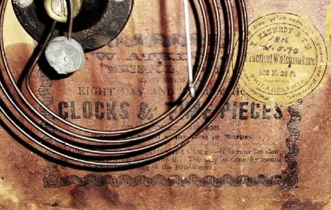 C.1848, M. W. Atkins and Co., Bristol, CT, 8-day full sized steeple clock in very good condition.