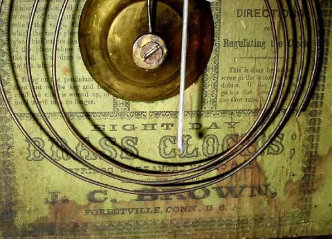 C.1855, J. C. Brown, Forestville, Conn, 8-day time/strike rosewood steeple clock.