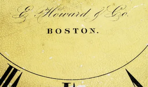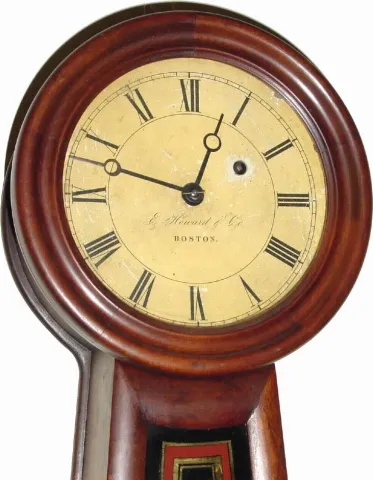 with restorations. This clock retains its original paper over zinc dial (with tear and minor losses)which was used just a short while after Edw Howard...