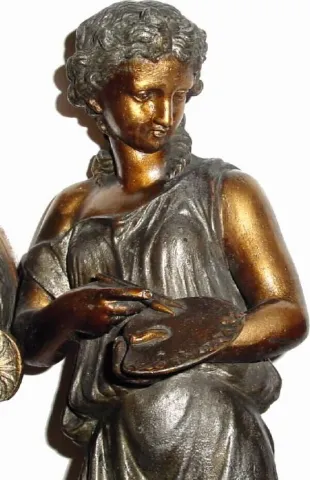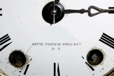 C.1877, Seth Thomas, Sons and Co, NY, Pattern 8055, double statue mantel clock.