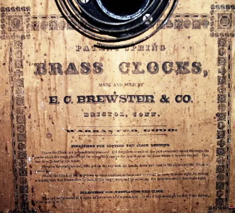 C.1842, E. C. Brewster and Co., Bristol, Conn, 30-hour time/strike iron backplate movement OG shelf clock, in generally good condition, with restorations.