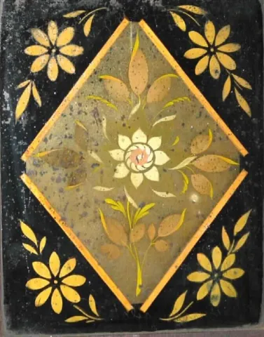 The are some minor veneer chips on the flat corners. The painted wood dial has faded and has some scratches and dirt. Both glasses are original with f...