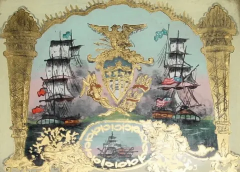 This is a cute little timepiece with original finish and Hull glasses. The finish has oxidized with age, the gilding on the lower bracket has some chi...