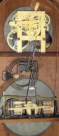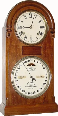 C.1879, Ithaca Clock Co., "No. 5" rosewood double dial calendar clock.