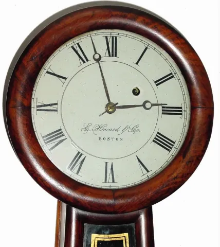 C.1840, Geo. Hatch, Attleboro, weight banjo, now with dial repainted, including an attractive but spurious signature of E. Howard and Co., Boston.