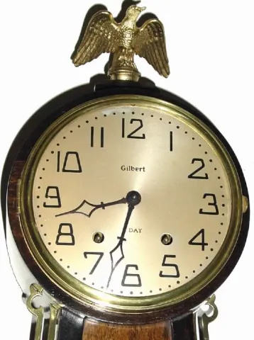 C.1929, Wm. L. Gilbert, 8-Day Banjo, time and strike (pendulum movement), in very good original condition.