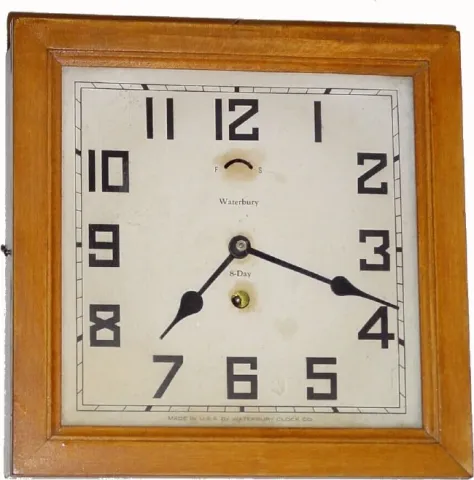 C.1930, Waterbury Clock Co., "Square Lever" 8-day wall timepiece, in very clean condition.