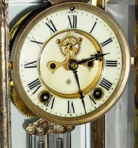 C.1917, Ansonia Clock Co., "Peer", 8-day time/strike crystal regulator, all brass case.