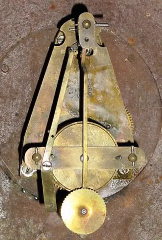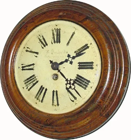 The case and dial are made as one piece, in the French style. The molded area is grain painted. The dial has some minor paint loss. The little brass p...