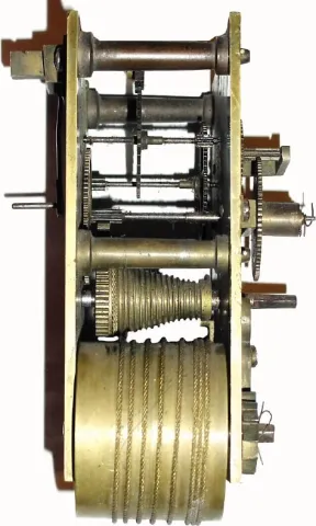 C.1890, English fusee gallery timepiece movement.