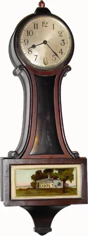C.1928, New Haven Clock Co., "Welton" 8-day time banjo timepiece, in fair as-found condition, dirty.