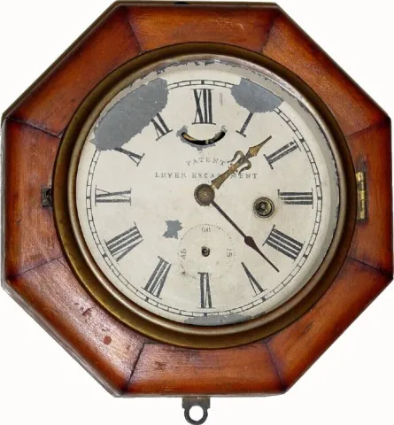 C.1860, New Haven Clock Co., 30-hour octagon lever wall timepiece, in poor condition.