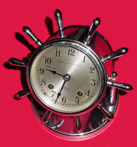 desk clock, in chrome, and in very good original condition. This model was made over a long period of time, this one for the "London Harness Co." ( 4 ...