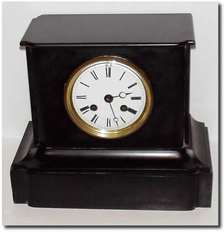 C.1890, French, Black Marble Mantel clock, with broken time spring.