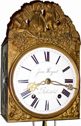 C.1890, French, Juan Neugart, Volladolid, 8-day time and strike Morbier wall clock.